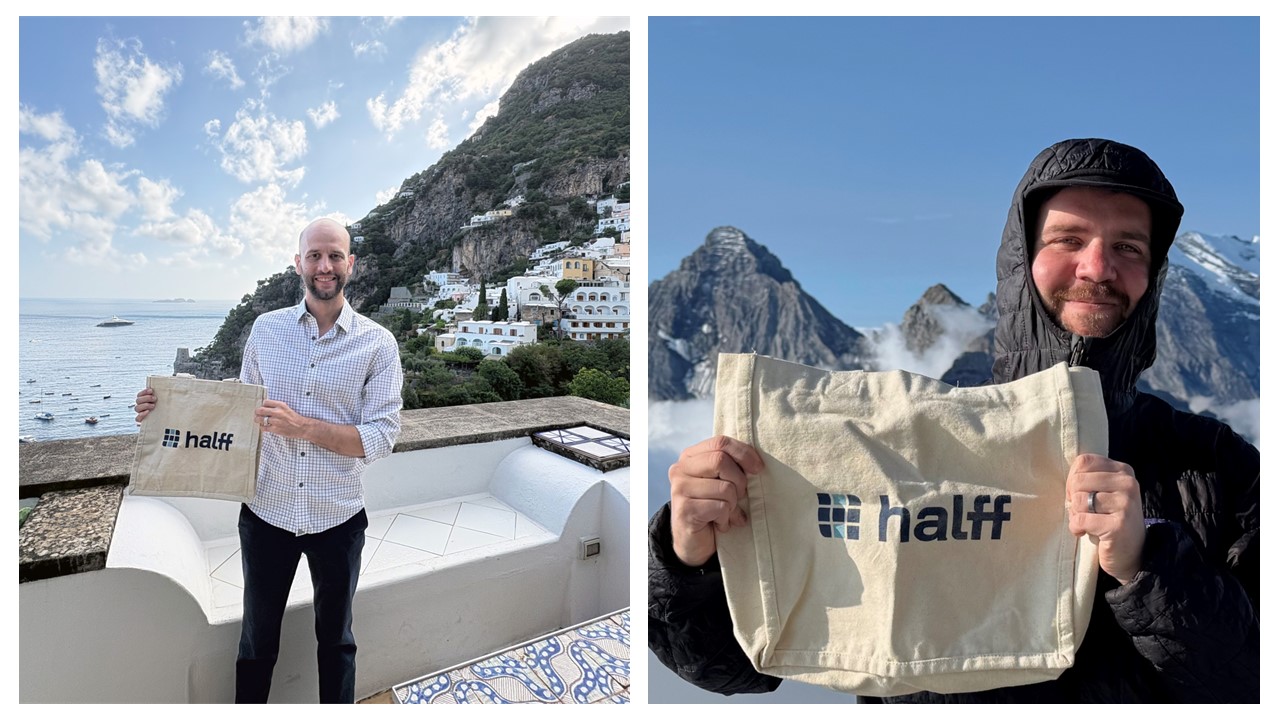Andy Dutton (left) and his Halff bag took off to Italy, enjoying the sights in Naples and Positano!